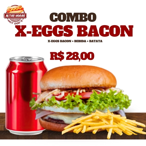 1 X-Eggs Bacon + 1 batata P + 1 refrigerante lata