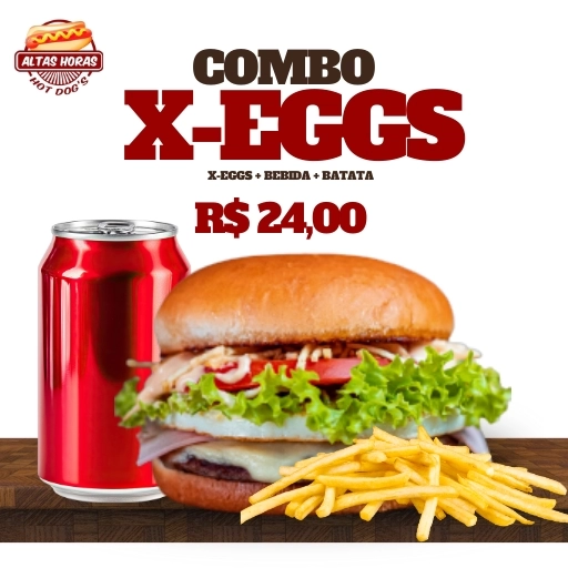 1 X-Eggs + 1 batata P + 1 refrigerante lata