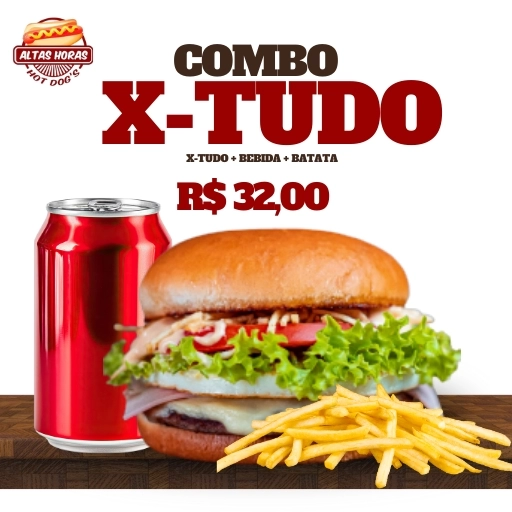 1 X-Tudo + 1 batata P + 1 refrigerante lata
