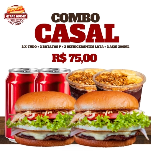 2 X-Tudo + 2 batatas P + 2 refrigerantes lata + 2 açaí 200ml